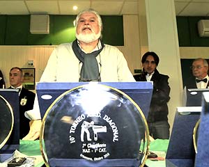 ![]() Agostino Arona premiato dal direttore di gara Iacò |